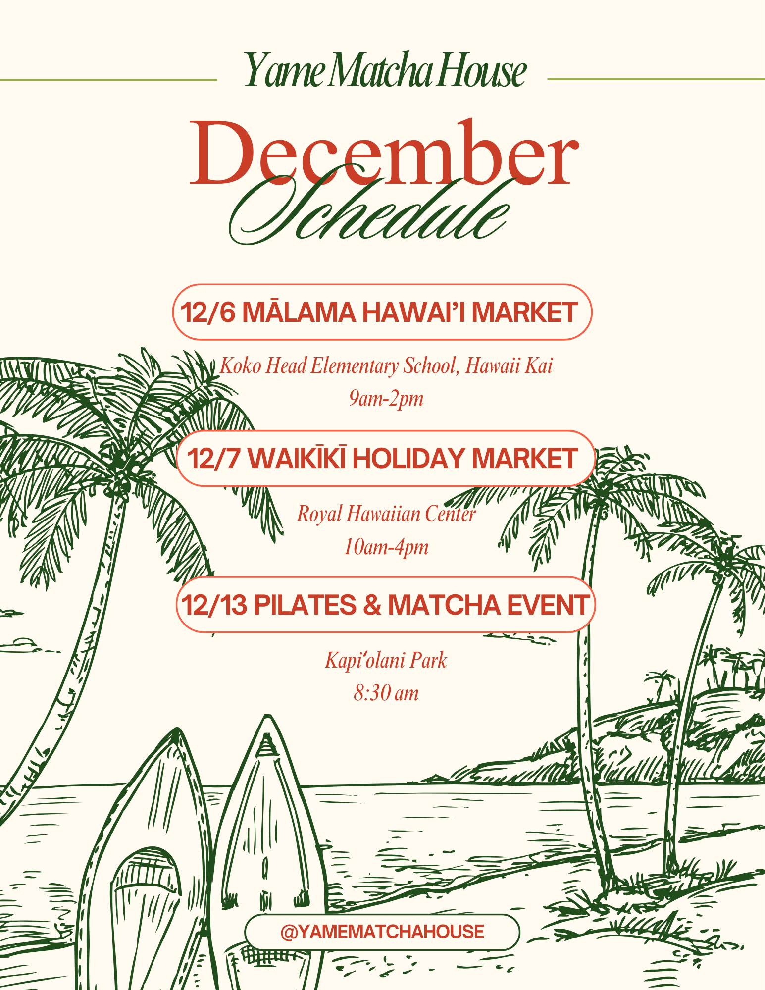 We source our matcha from a historic farm in Yame, Fukuoka, a region known in Japan for its deep umami, vibrant color, and smooth finish. Inspired by Yame’s heritage and its connection to Hawaii through Senator Daniel K. Inouye, we honor a legacy of cultural connection. Our founder from Fukuoka brings authentic Yame matcha to Hawaii, blending it with local ingredients. We aim to share a lifestyle rooted in flavor, culture, and intention.